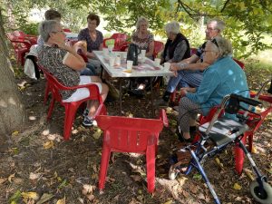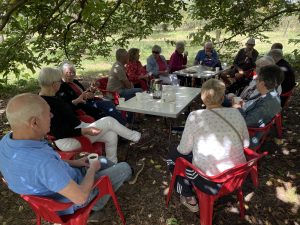 In de boomgaard van Heerkens dronken we met 22 personen koffie/thee onder de mispelboom.