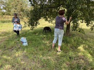 Daarna plukten we fruit om zo op te eten , om appelmoes van te maken of appeltaart….